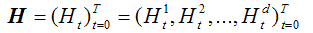 H(∙) is the matrix of the quantities held in each stock (1,...,d) over the investment interval with a final time horizon T. Each Ht in this matrix is a time series.